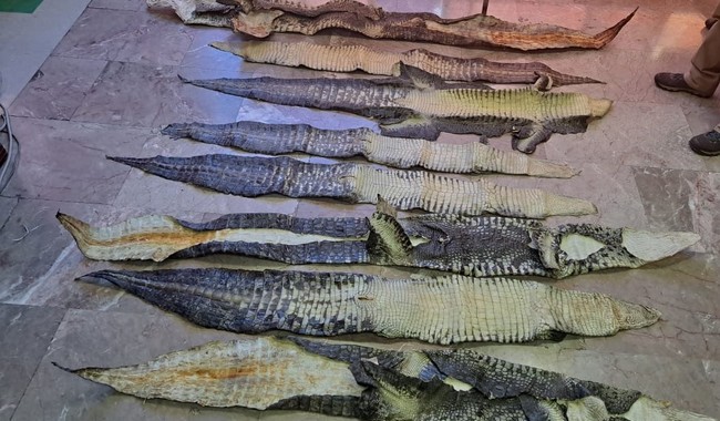 Un binomio canino de la Guardia Nacional localizó en el área de carga y descarga de una empresa de mensajería un total de ocho pieles de cocodrilo de pantano, una especie que se encuentra enlistada en la Norma Oficial Mexicana NOM-059-SEMARNAT-2010 y en la Convención sobre el Comercio Internacional de Especies Amenazadas de Fauna y Flora Silvestres.
