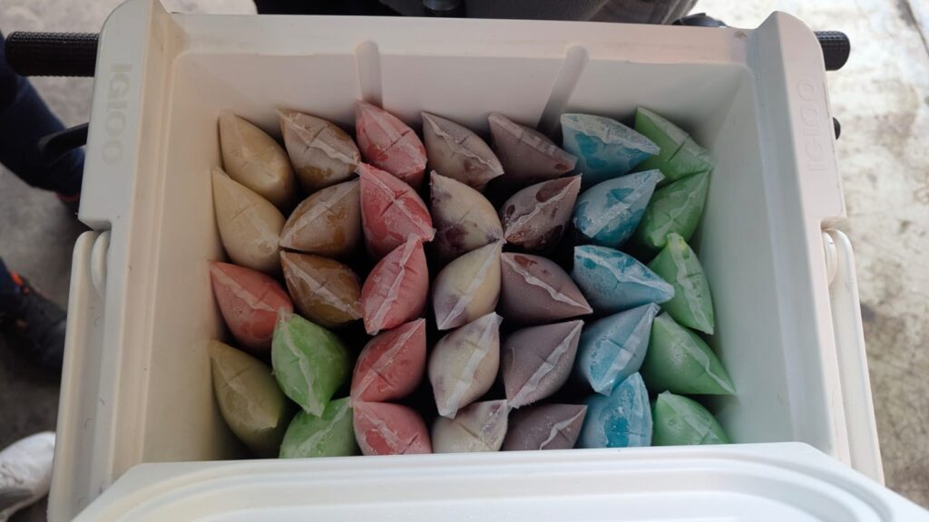 “Al principio eran bolis sencillos, pero poco a poco nos dio curiosidad experimentar con más cosas. No usamos esencias ni colorantes, solo ingredientes reales”, cuenta Yazmin, mientras acomoda su hielera en la bicicleta con la que recorre las avenidas de Izcalli.