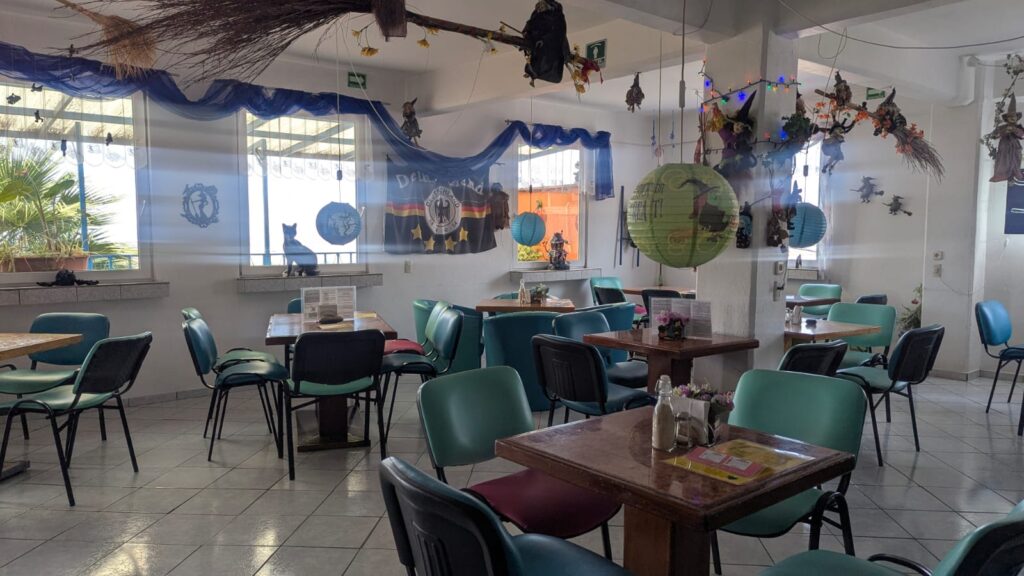 Entre los imperdibles están sus famosas ensaladas estilo europeo, muy lejos de las típicas versiones aburridas. Aquí llegan bien servidas, frescas, llenas de ingredientes y con aderezos preparados al momento. También destacan sus hamburguesas artesanales, waffles, banana split, chocofríos, frappés, salchichas, cervezas alemanas y una carta tan amplia que siempre habrá algo nuevo por probar.