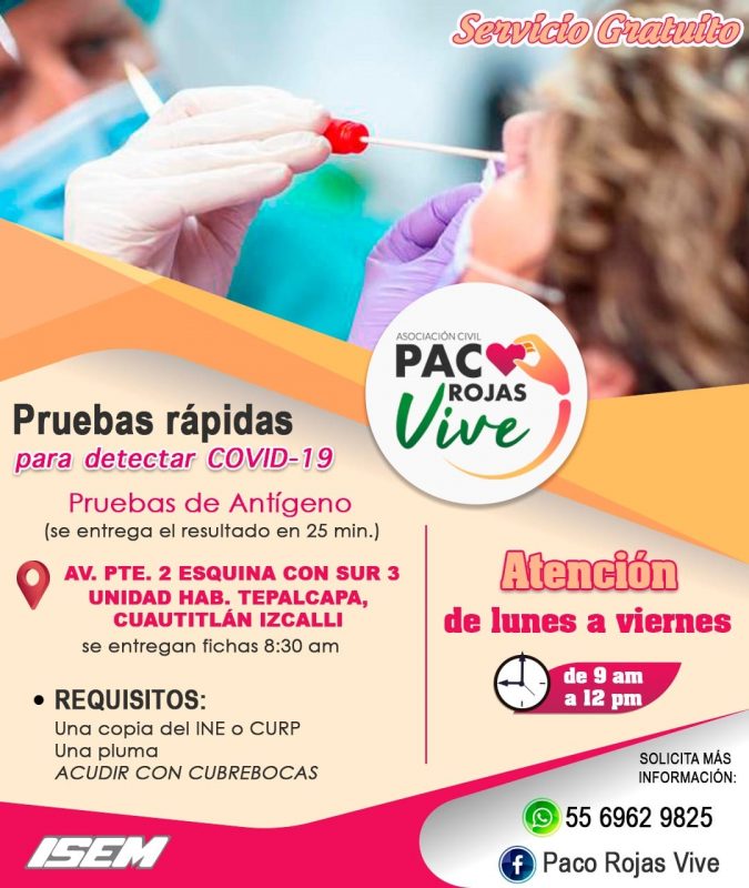 La asociación Paco Rojas Vive AC, continua con su programa de pruebas gratuitas para la detección de covid-19, por lo