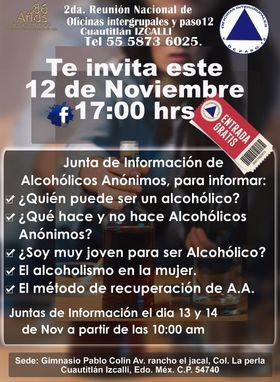 La Asociación de Alcohólicos Anónimos de Cuautitlán Izcalli te invita a la 2nda Reunión Nacional de Oficinas Intergrupales y Paso